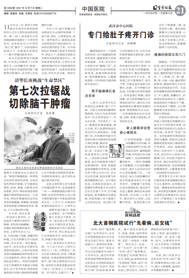 11月24日一早,清华大学附属北京清华长庚医院神经中心主任王贵怀来到病房查房。刚一进门,患者徐先生的家属就激动地握住了王贵怀的双手,这该是双方10年里的“第七次”握手了,在新冠肺炎疫情之下,在挑战生命禁区——脑干肿瘤切除的术后。