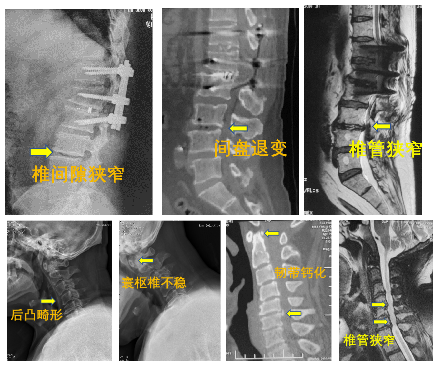 寰枢椎脱位是指先天畸形、创伤、退变、肿瘤、感染炎症和手术等因素造成的寰椎与枢椎(第一和第二颈椎)骨关节面失去正常的对合关系,发生的关节功能障碍和/或神经压迫的病理改变,严重时可导致延髓颈髓损伤和椎动脉受压,引起饮水呛咳、吞咽困难、四肢无力、瘫痪以及呼吸心跳暂停等危及生命的症状,手术的治疗风险和难度都具有挑战性。椎管狭窄主要是指多种原因导致颈、胸和腰椎管容积减小而形成的临床症状,严重者可出现颈肩胳膊/腰腿疼痛、感觉减退、肌肉萎缩、上/下肢无力和大小便障碍等。