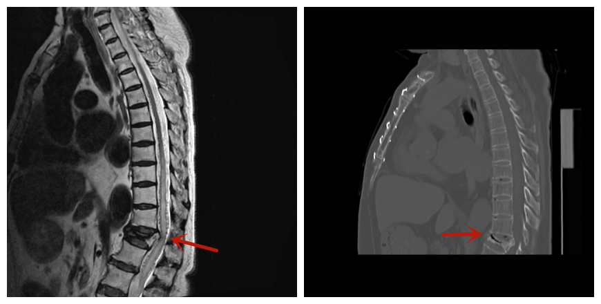 患者来自内蒙,10个月前,午睡醒后突然出现两腿无力,膝关节以下至足底也有明显的麻木感,不能独立站立、行走了。家属赶紧把她送到当地医院,影像检查提示胸腰段脊髓内异常信号,但具体原因却难以诊断。经过一段时间的康复和药物治疗后,病情稍有好转,可由于腿脚不便,在一次摔倒后造成椎体骨折,病情再次加重,下半身还新发了刀割样阵发性疼痛,生活苦不堪言。经推荐,患者一家来到北京清华长庚医院,寻求进一步治疗。