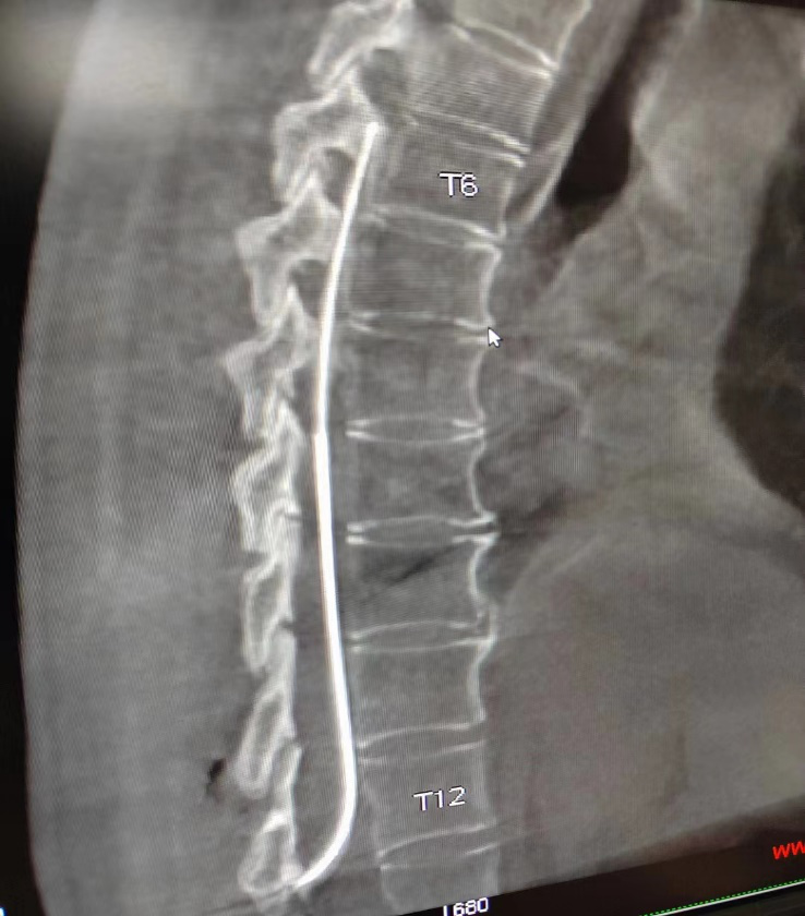 在临床医学、影像科,手术室等多学科共同参与配合下,由路桂军医师团队为患者顺利的完成了鞘内镇痛泵植入术(图1)