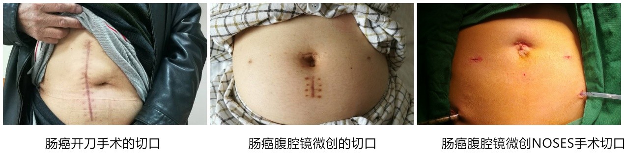 上图对比可见,传统的肠癌手术,需要在腹部切开10-20厘米的切口。目前多数医院普及使用的腹腔镜微创结直肠癌手术,往往还需要在患者腹部切开一个3-4厘米的切口,从中取出肠道和肿瘤。尽管这已经是“微创”,但毕竟患者腹部有一道切口,术后仍会感觉疼痛。