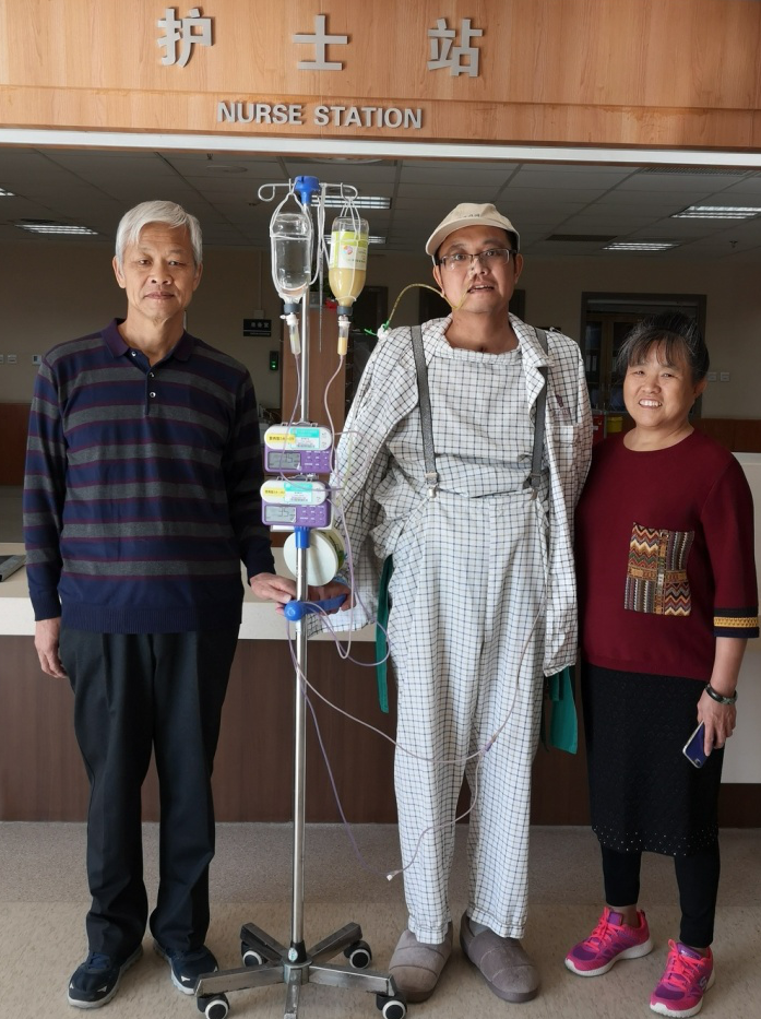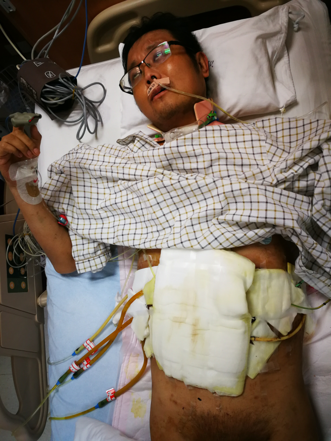 本次交流的重点病例是一名车祸伤术后多发肠瘘、腹腔出血、腹腔开放的34岁青年男性,车祸伤急诊手术后出现并发症,在25天内因为反复肠瘘、腹腔出血又被迫进行了四次急诊腹部手术,最终导致了严重的多发肠瘘及腹腔开放,于2018年1月25日转来我院重症监护病房。入院后经过水电解质紊乱纠正、脏器功能维持、腹腔感染控制,病情得到逐步控制后转回胃肠外科病房进行后续的冲洗引流、营养支持等综合治疗,使得腹壁创面逐步缩小,患者体力明显改善。