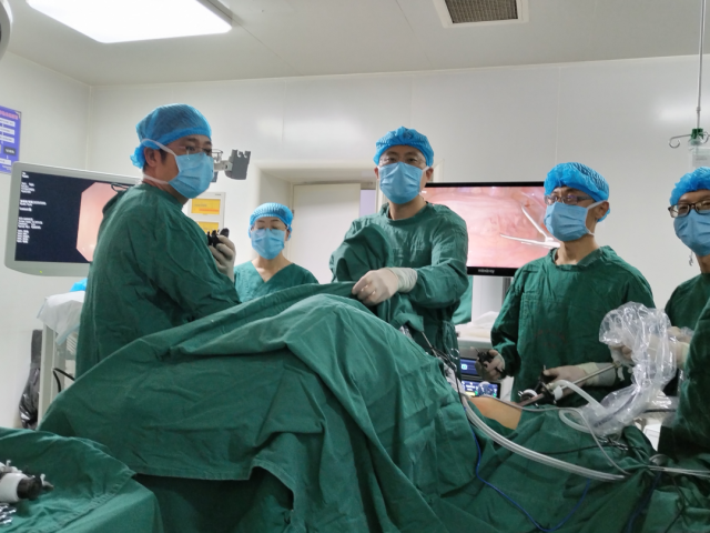 庄卓男(左三)带领胃肠外科与消化内科联合双镜手术操作