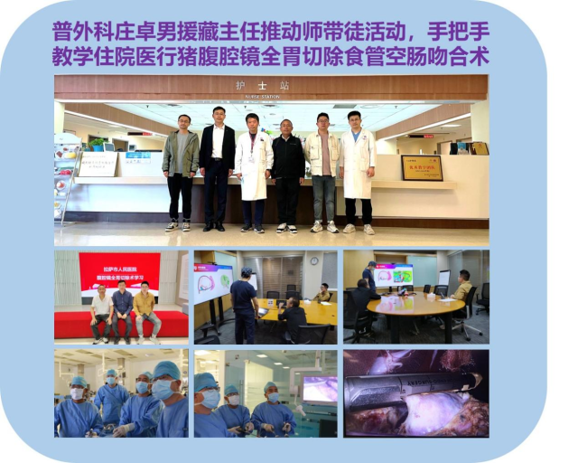 第二天,一行3人来到动物手术培训基地,开展腹腔镜胃癌根治术(全胃)的学习,帮助年轻医师积累操作经验,为未来成长打下坚实基础。“作为主刀完成猪的腹腔镜全胃切除食管空肠吻合术,我受益匪浅。手术开始前,因为在医院日常工作当中见到的胃癌患者较少,有一些担心。但在手术实际主刀操作当中,在庄卓男医师的指导下,慢慢掌握超声刀的操作,慢慢理清手术思路、解剖手术层次,最终顺利完成手术。”拉萨市人民医院普外科住院医师都凯强表示,“这次学习机会锻炼了耐心,清晰了手术方式,也发现了自己的不足,希望这种动物手术学习课程在我科继续开展下去。”