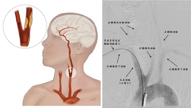 图1 患者动脉造影提示为无名动脉与左颈总动脉共干的“牛型弓”变异,增加左侧颈动脉支架手术难度