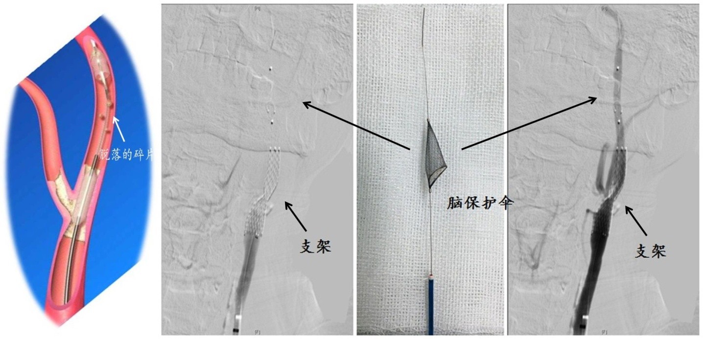 图3 CAS术中应用保护伞可有效避免不稳定斑块在术中破碎、脱落带来的脑梗塞风险