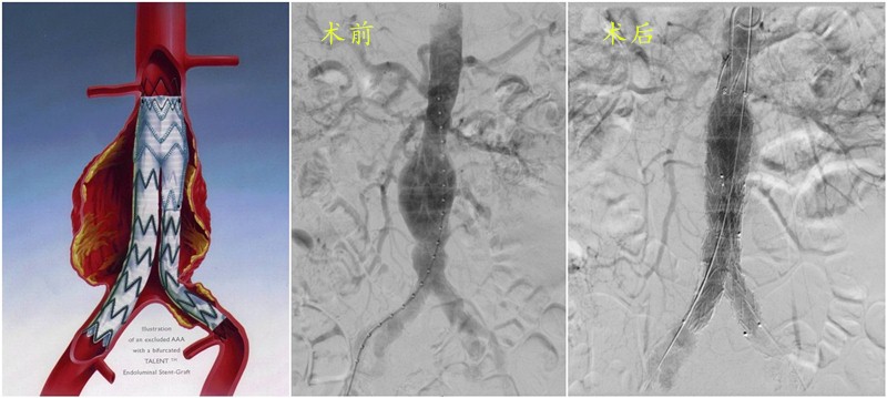传统外科开腹手术,通过手术直接切除动脉瘤,接上一段人造血管,恢复正常血流,手术创伤大,需要患者能较好得耐受手术应激。