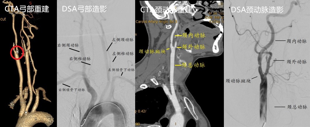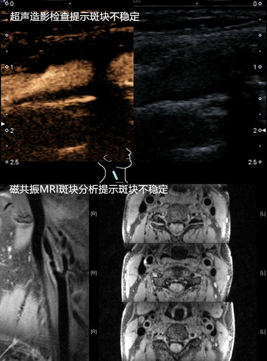 颈动脉彩超检查能够做出初步判断,但其受检查技师操作经验及主观判断影响大。为了进一步指导手术治疗,还需要明确颈动脉狭窄部位、长度以及程度、斑块成分等详细信息。颈动脉血管造影(DSA)能准确检查出动脉狭窄的程度和范围,是诊断动脉病变的金标准。近年来,应用超声造影技术、CT血管增强(CTA)以及磁共振血管成像(MRA)技术,同样可以得到全面的动脉狭窄信息,通过三维建模从不同的角度显示血管结构,良好地识别不稳定斑块。