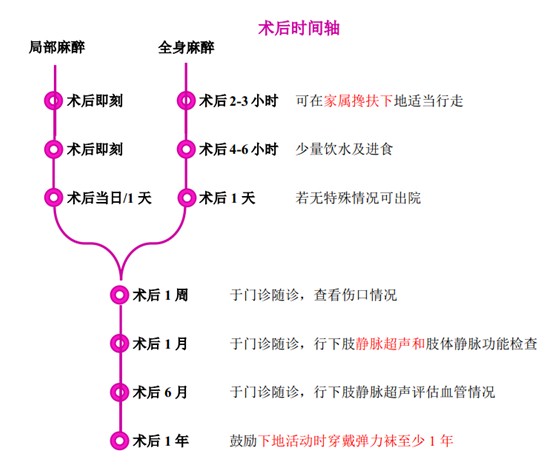 故事中的张先生在门诊做完了所有的术前检查,包括验血、心肺评估、下肢静脉超声和静脉瓣膜功能检查,于手术当天早上来到医院签署手术同意书并等候手术;手术结束后回到病房休息过夜;第二天一早大夫给伤口换药后就直接出院啦,从入院到出院的总时间不超过24小时!