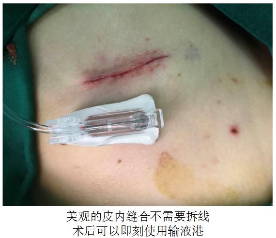 2)没有导管暴露于体表,不限制日常活动,不影响洗浴;植入输液港部位美容缝合,对局部外观影响小;