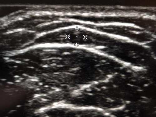 术前超声检查头静脉,精准定位,图示所示头静脉直径约3mm