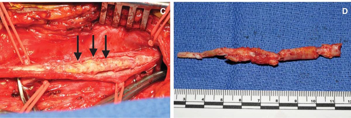 图1传统开刀手术的创伤大 但也只能将有限的一部分粥样硬化斑块取出