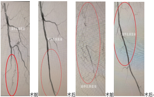 后续(图9):王大爷下肢恢复了血流,腿也不疼了,行走轻松,愉快的出院回家了,我们陆续又为其他三十余例下肢动脉严重硬化闭塞的患者实施了同样的手术,取得了满意的疗效。