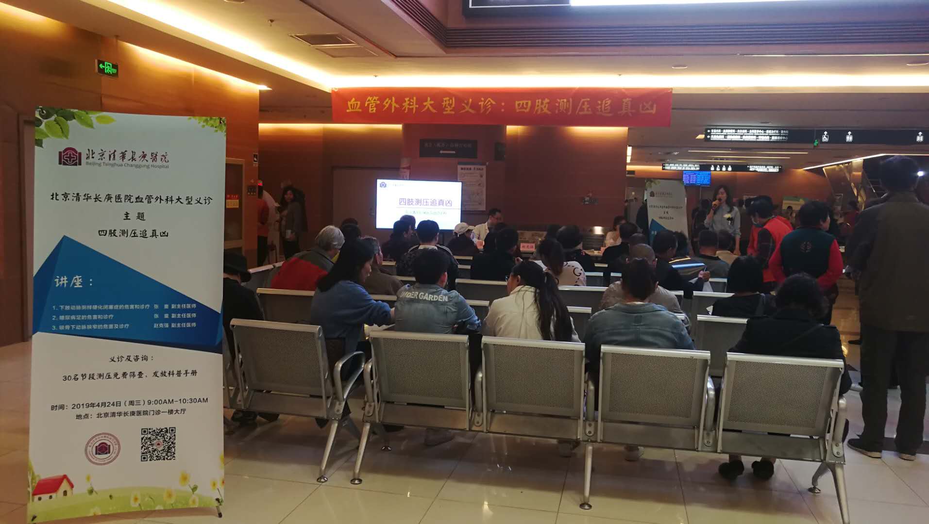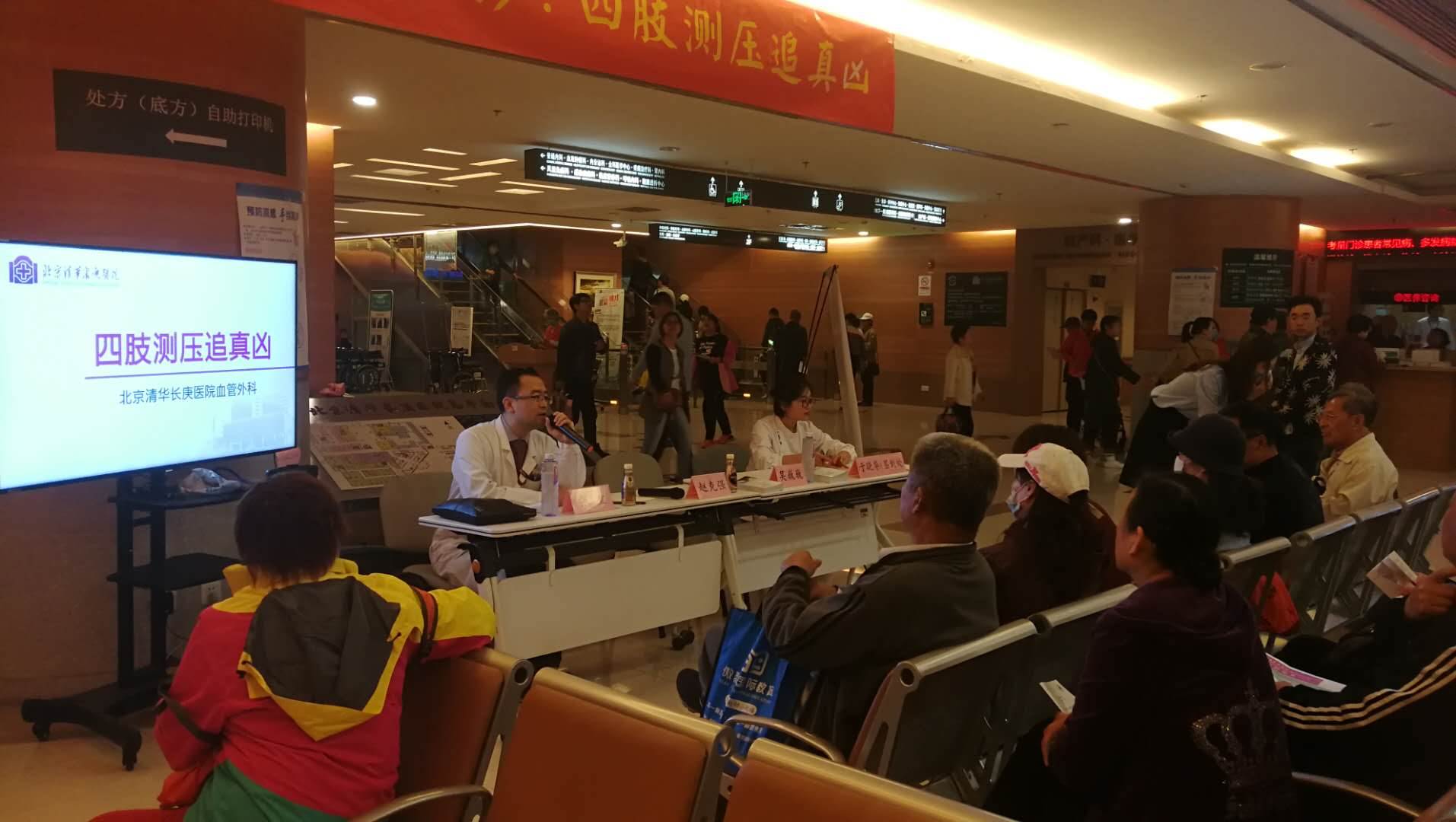 北京清华长庚医院4月24日电(通讯员陆茹 于晓华 张童)4月24日上午9点,北京清华长庚医院一楼门诊大厅血管外科“四肢测压追真凶”科普讲座和义诊活动准时开始。