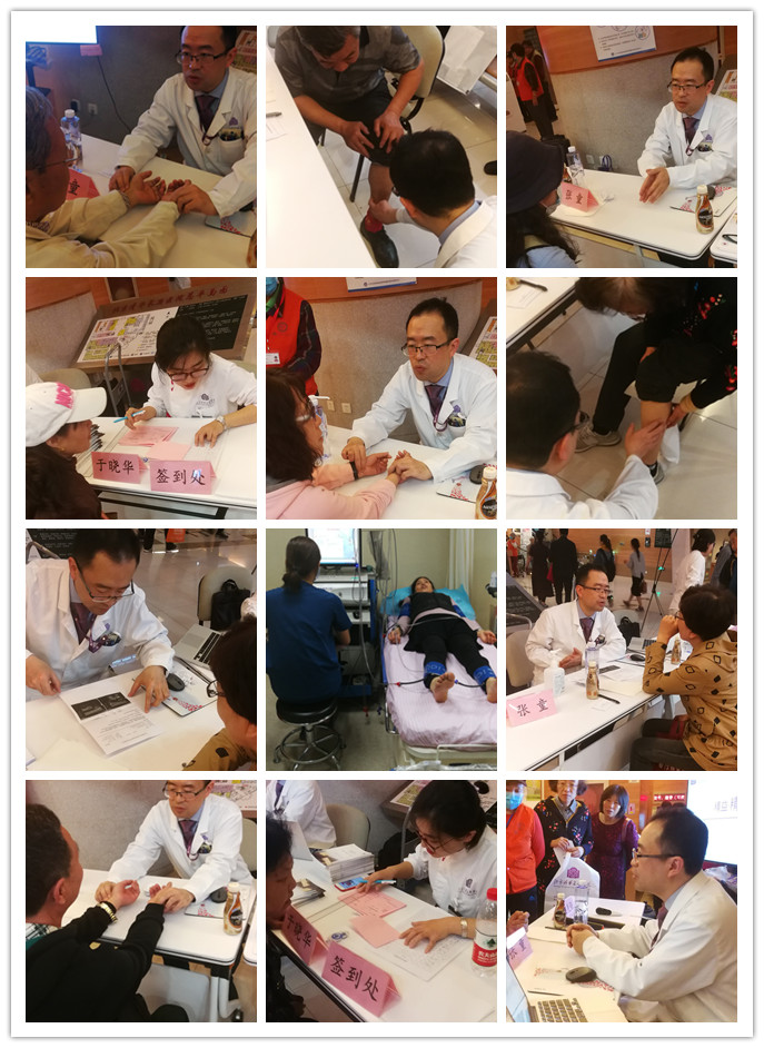 科普讲座结束后,张童副主任医师为30多位患者进行了义诊,于晓华个案管理师为需要的患者发放了”节段测压免费筛查卡“,李艺文专科护士运用”肢体动脉节段测压仪”为患者进行了”四肢动脉节段测压“。