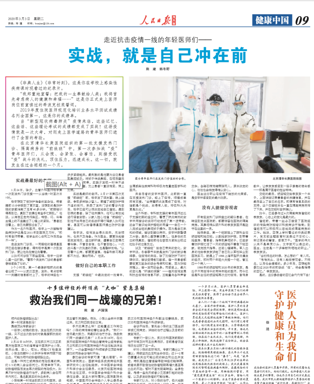 在北京清华长庚医院组织的第一批支援发热门诊、隔离病房的“前线班”中,第一次参加战“疫”青年医师们,从会慌、会紧张、会害怕,到接受抗“疫”战斗的洗礼,顶住压力,迅速成长。这一切,就发生在过去短短的一个月。血管外科杨宇医师作为代表,他说:实战是最好的老师!