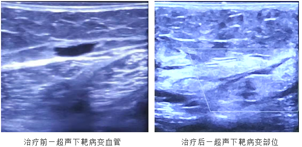 经微波消融治疗后,术后即刻的超声影像结果及患者术后7天的随访结果显示大隐静脉靶病变血管已完全闭合,达到治疗目的。后续还将持续关注手术的远期效果。