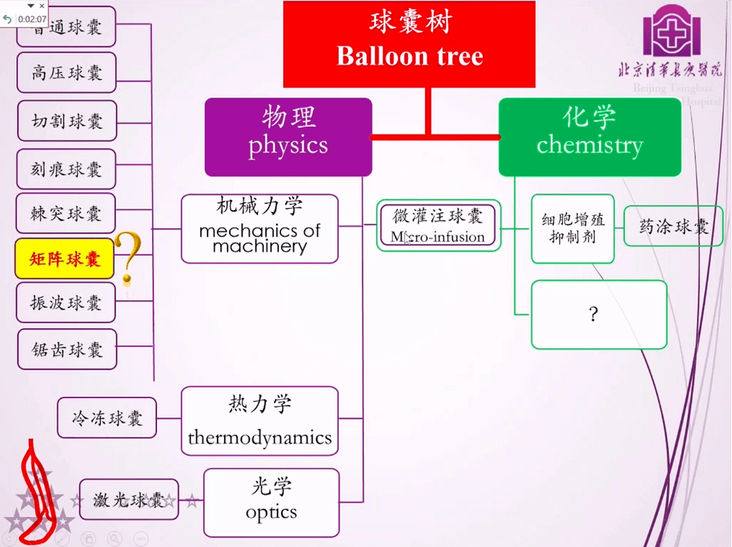 1974年,Andreas Gruentzig改进了经皮球囊血管成形术,并于1977年完成了人类首例经皮冠状动脉球囊成形术,球囊的应用在世界范围内普及开来。时至今日,世界上存在多种多样的球囊,目前球囊的发展趋势主要分为以物理原理、化学原理以及二者交融的球囊。