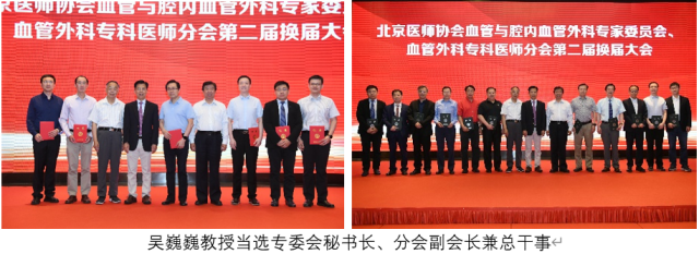 北京协和医院血管外科教研室主任、我院血管外科名誉主任刘昌伟教授当选专委会主任委员、分会会长。我院血管外科科室主任吴巍巍教授当选专委会秘书长、分会副会长兼总干事。血管外科赵克强副主任医师、张童副主任医师、赵俊来主治医师当选为分会理事。