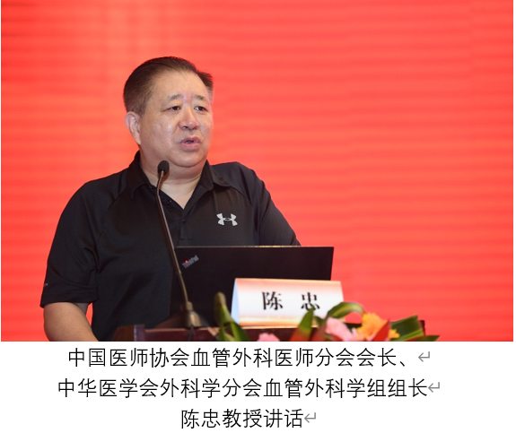 中国医师协会血管外科医师分会会长、中华医学会外科学分会血管外科学组组长陈忠教授讲话,陈会长首先对第一届专委会和分会所有成员的当选表示热烈祝贺;希望我们所有的血管外科的同道团结在一起,共同努力,为北京、全国乃至世界血管外科的发展贡献力量。