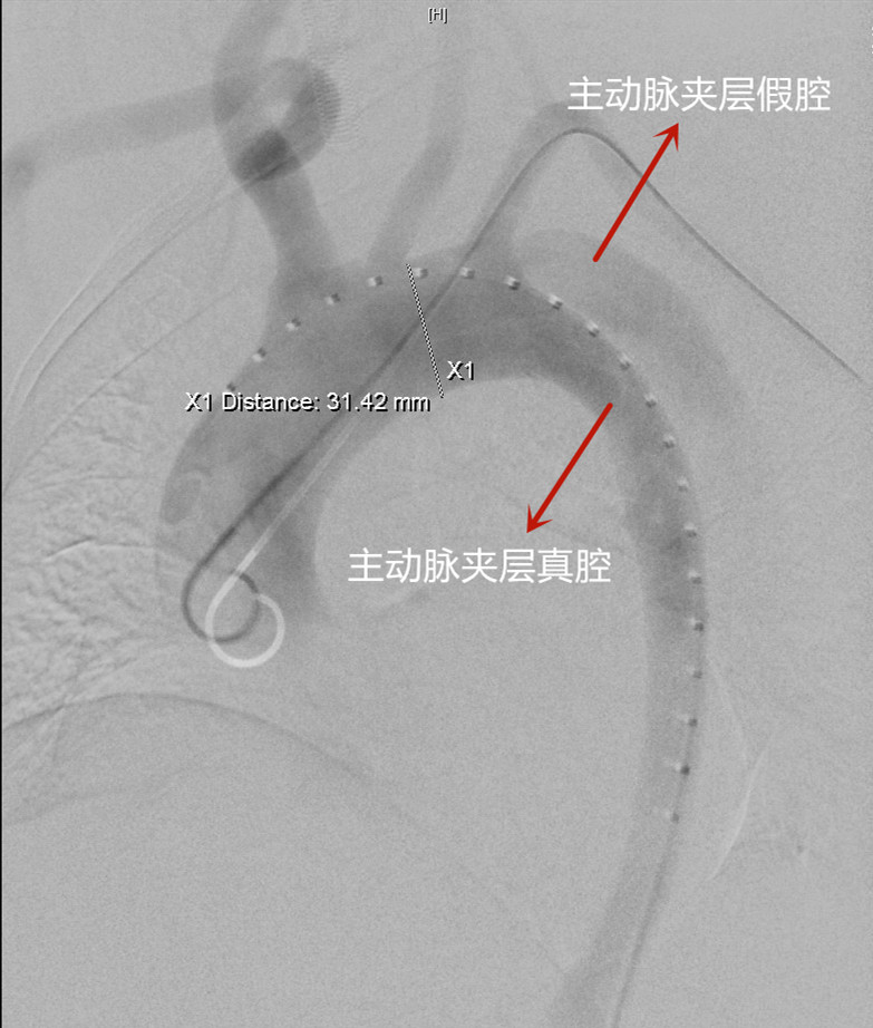 马士程立刻联系血管外科进行会诊。吴巍巍与副主任医师赵克强立即赶至急诊,然而严峻的问题摆在眼前:手术需要放支架,然而主动脉夹层已经很危重,影像还显示破口已经延伸左锁骨下动脉,如果放支架时堵住左锁骨下动脉,就会导致缺血,带来脑梗、肢体缺血甚至截瘫的风险;如果不封堵,就会因为支架无法彻底贴合夹层裂缝而导致内漏,仍有血液流入胸主动脉内、中膜之间,病根无法去除。