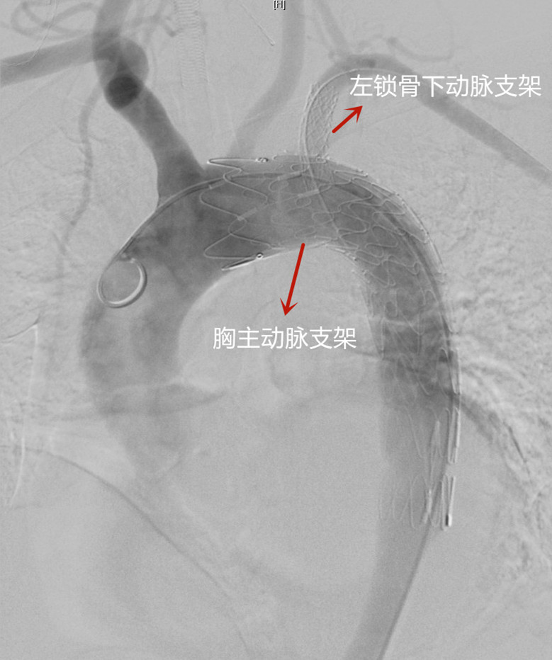 胸主动脉支架、左锁骨下动脉支架植入后造影