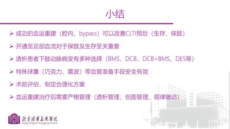 最后,曹教授总结到,下肢缺血性疾病对患者危害极大,但成功的腔内血运重建可以解决此类疾病的困扰,作为特殊人群,透析患者需要更充分的评估和手术方案制定,选择合适的器械以及严格的随访管理才可以保证治疗的效果。