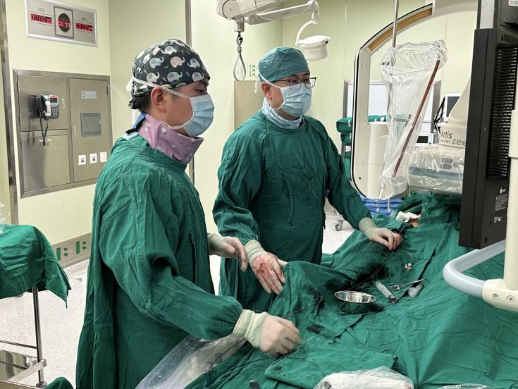 ”请紧急完善动脉增强CT明确出血动脉,CT检查后直接送手术室!”血管外科值班二线、主治医师曹战江立刻回应道。放下电话,他马不停蹄地同值班一线医师行动起来,火速联系介入手术室、麻醉科,开始术前准备。