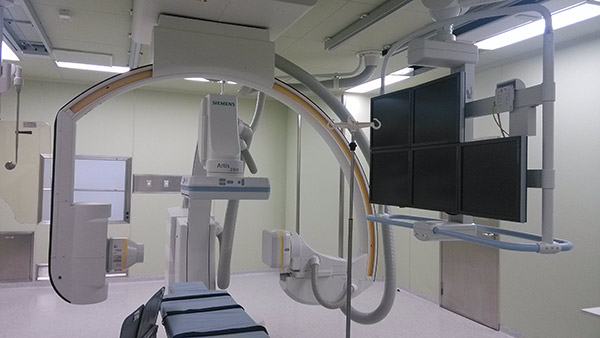 血管外科复合手术室改造工程已进入层流设计安装阶段,将在开业时投入使用。手术间装备目前最先进的西门子Artis Zee数字化双平板血管造影机,可同时进行两个角度投照,最大程度的保证了血管腔内治疗的精准。层流设计达到净化百级,完全满足血管手术中人工植入物所要求的无菌条件,可进行各种介入操作和介入联合开放手术操作,最大程度的保障了手术安全和洁净。(吴巍巍,曹战江报道)