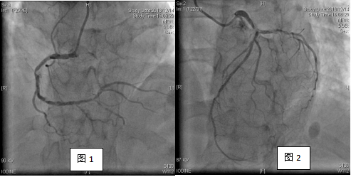 女性患者,67岁,以发作性胸痛4年,加重1周急诊入院。患者4年前活动时出现胸闷、胸痛不适,症状持续3-5分钟,休息后自行缓解,就诊于当地医院行冠脉造影术提示冠脉狭窄75%(具体不详),未行再血管化治疗,出院后规律口服氯比格雷、阿托伐他汀、酒石酸美托洛尔、单硝酸异山梨酯治疗,自觉症状好转。1周前出现轻微活动后心前区压榨样疼痛,伴胸闷、大汗,持续10分钟左右自行好转,未予重视,2天前活动后再次出现上述症状,在附近医院诊断为“急性非ST段抬高型心肌梗死”,住院给予药物治疗症状缓解。因仍偶有心绞痛发作,转至我院急诊冠脉造影示左主干+三支病变。