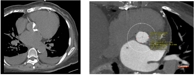 瓣膜选择:根据患者主动脉CTA重建图像,确定患者适用21# J-Valve自膨胀生物瓣膜