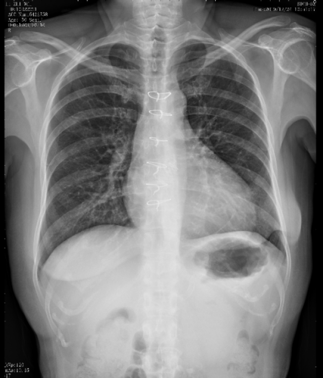 术后1月患者回院复查,自诉可正常进行日常家务,胸闷憋气症状基本消失。