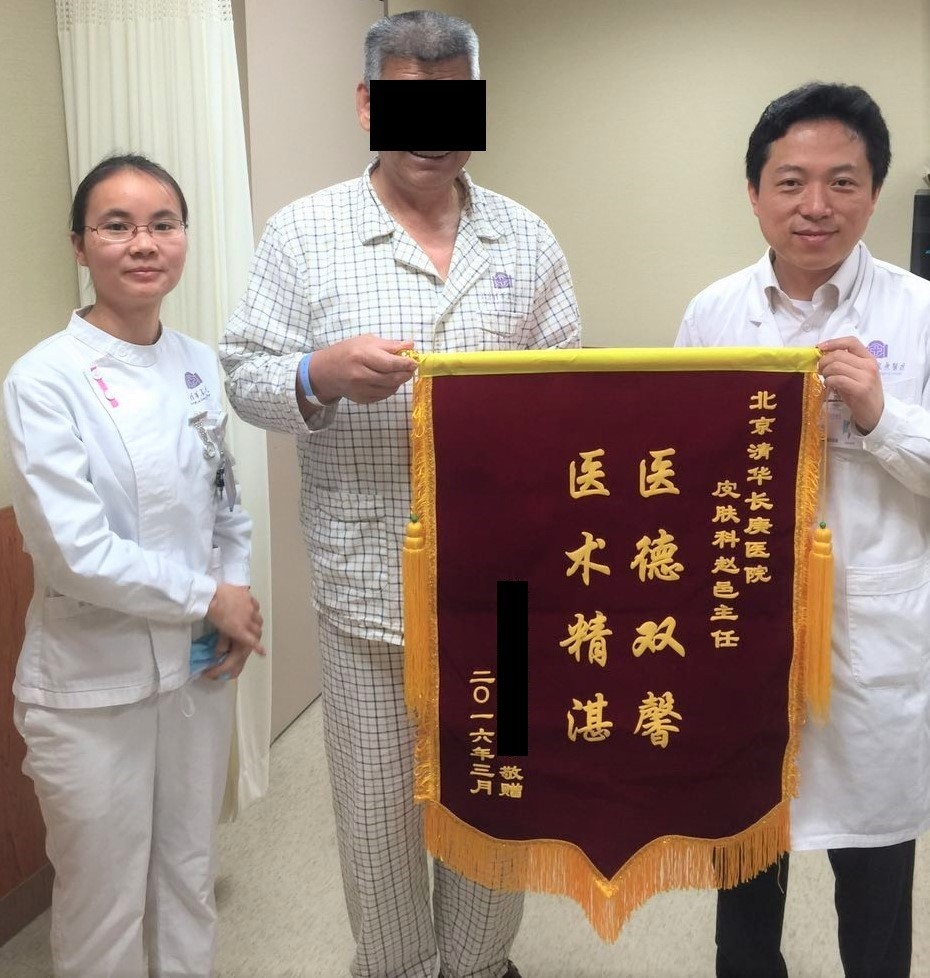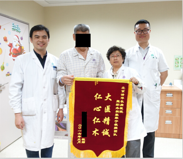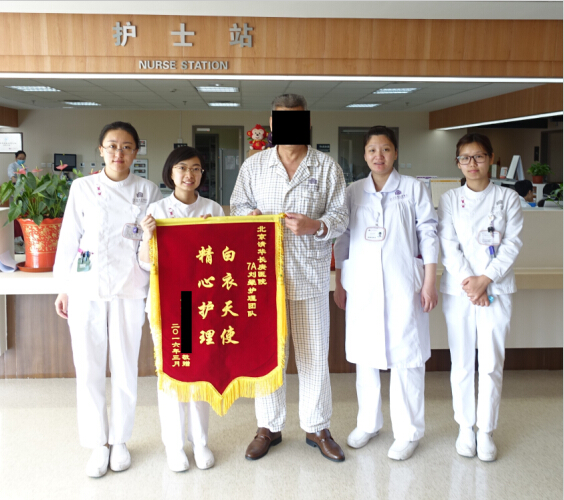 出院前,黄老先生特地制作了锦旗感谢北京清华长庚的医护人员。他说:”谢谢你们!北京清华长庚医院是人民的好医院!这里的大夫是人民的好大夫!这里的护士是白衣天使!谢谢你们!” 。