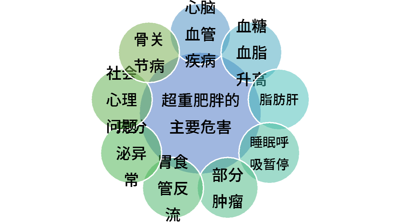 肥胖已被 WHO 认定为疾病。肥胖也会引发一系列健康问题,例如,增加高血压、糖尿病、血脂异常、冠心病、卒中、部分肿瘤等多种慢性病的风险,肥胖也可导致社会和心理问题,增加居民卫生保健服务成本,造成医疗卫生体系的负担加重。