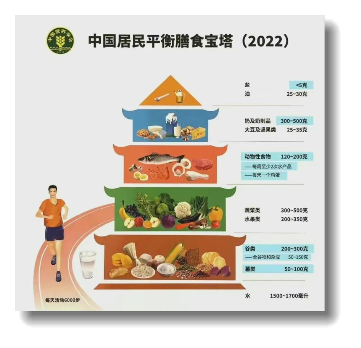 核心推荐:坚持谷类为主的平衡膳食模式。每天的膳食应包括谷薯类、蔬菜水果、畜禽鱼蛋奶和豆类食物。平均每天摄入12种以上食物,每周25种以上,合理搭配。每天摄入谷类食物200~300g,其中包含全谷物和杂豆类50~150g;薯类50~100g。