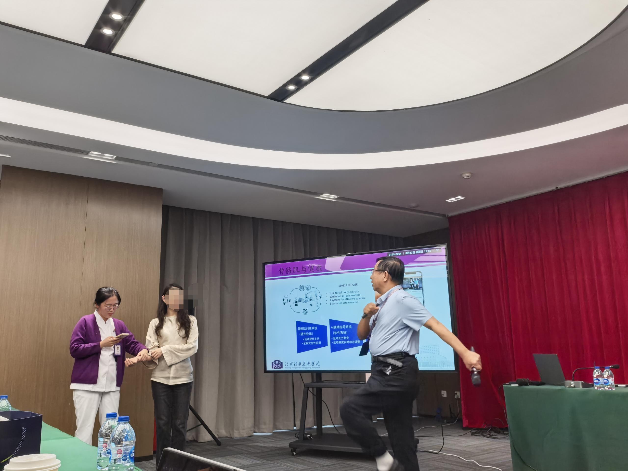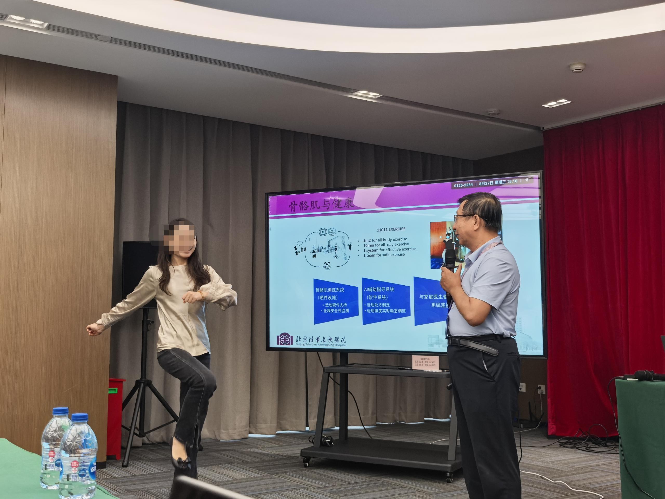 全科健康中心主任王仲教授应用诙谐幽默的方式从身体健康、心理健康、社会适应性等方面开展健康科普讲座,强调运动与心理因素在健康促进中的重要性。通过现场运动实践与员工互动,将健康小知识通俗易懂的展示给大家。