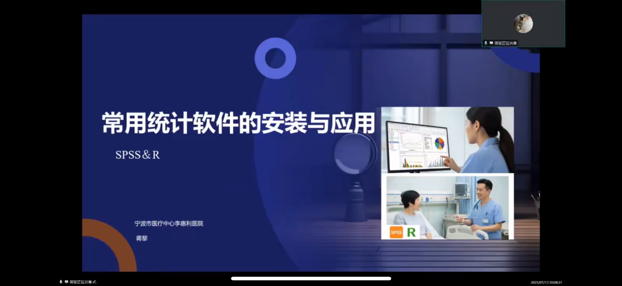 7月12日,昌平区基层医生科研联盟,采用线上授课的方式讲授“常用统计软件安装与应用(SPSS、R语言)”课程。北京市昌平区全科质控中心主任、北京清华长庚医院全科医学科主任、昌平区基层医生科研联盟盟主王仲主任致辞发言,王非副主任主持会议,浙江省宁波大学全科医学专业学位硕士点负责人、宁波市李惠利医院急诊科副主任蒋黎副教授进行授课。此次培训班面向昌平区各社区卫生服务中心以及二级医院的医务人员,活动吸引了线上八十余名学员积极参与。