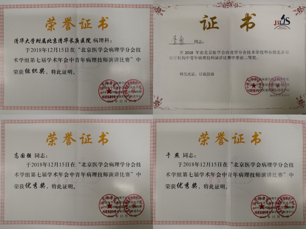 此次演讲比赛,科室尹洪芳主任高度重视,技术组长杨江辉带领全科技师积极准备。在参赛前,技术组在尹洪芳主任的指导下进行了科室内演讲,尹洪芳主任耐心细致的对每位参赛选手制作PPT的展示方式和演讲技巧所暴露出的问题逐一进行点评和指导。在比赛中,身在另外一个学术会场的尹洪芳主任对国家会议中心进行中的技师演讲比赛持续关注。病理技术团队能在北京市的比赛中脱颖而出,斩获佳绩。成绩的取得,离不开每位参赛者的辛勤付出,离不开技术团队的团结奋进,更离不开尹洪芳主任对病理技术队伍建设的重视,离不开院领导和全院同仁对病理科发展的鼎力支持。