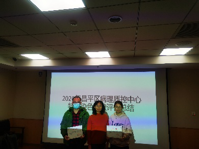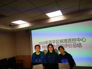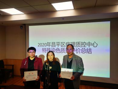 会议间隙,北京市昌平区医院病理科主任刘艳丽主任医师对参加昌平区病理质量控制和改进中心主办的特殊染色室间质控的染色质量进行了评价总结,我院病理科尹洪芳主任、北京大学国际医院病理科副主任饶晓松主任医师、北京市昌平区医院病理科主任刘艳丽主任医师为参加此次室间质控合格的单位颁发了证书。