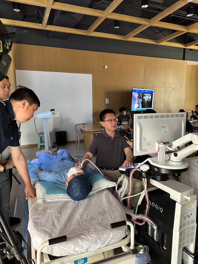 (解放军总医院第四医学中心超声科主任傅先水现场授课及实操演示)