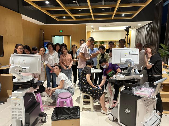 “纸上得来终觉浅,绝知此事要躬行。”实践是认识的目的。这次培训最大的亮点还是每天的分组实操训练。充分的上机练习、老师在旁边手把手的指导和学员之间相互探讨都让我获益匪浅。此外,门诊见习观摩是我最感兴趣的部分。第一天白老师与刘老师配合做介入,严格规范、稳准快,给我很好的示范。第二天华斌老师扫查诊断,精彩细致,还有很多罕见病例,开拓了我的思维。