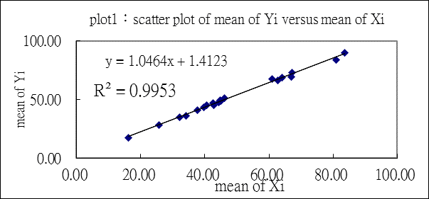 两台生化仪肌酐结果比对,相关性良好如下图:y="1.0464X+1.4123,R²=0.9953。