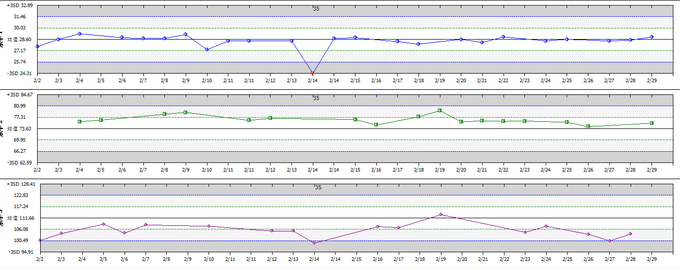1、接到临床反馈,检验科第一时间查看APTT质控,质控处在规定范围内(图1),同时段内发出的其他患者APTT未出现此问题,复测标本,结果无变化。