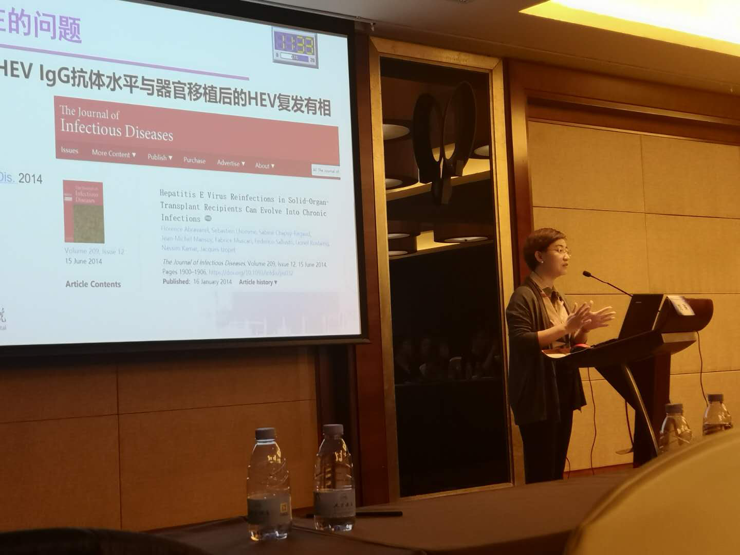 检验医学科刘琳博士结合其自身研究方向代表我科就戊型肝炎的诊断及临床进展做了大会发言。戊型肝炎在临床很容易被忽视,其人群感染率超过20%,核酸诊断作为敏感而特异的诊断技术,目前尚未普及应用。在器官移植与免疫力低下人群,戊肝可能造成慢性感染。来自中国CDC病毒所的秦堃研究员则结合我国动物流感的流行介绍了人感染禽流感的诊断进展。此外,与会专家分别就百日咳抗体检测,乙型肝炎病毒、产气荚膜梭菌血流感染检测等方面做了详尽报告。