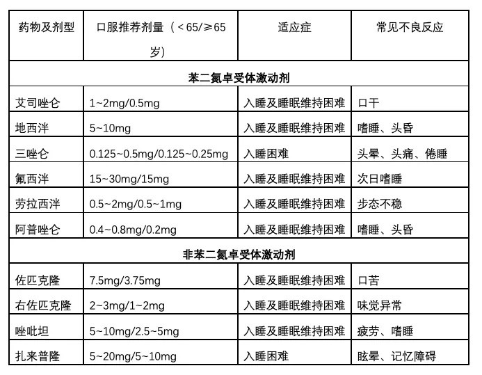 1)在病因治疗、认知行为治疗和睡眠健康教育的基础上,酌情给予催眠药物。