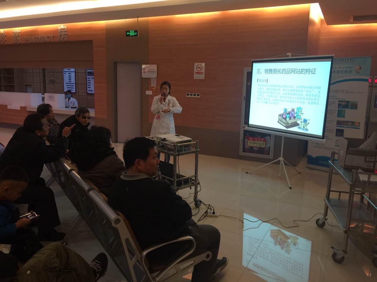 讲座的最后,刘胜男药师为大家提供了网上放心的购药网站健客网、康爱多、1药网、健一网、药房网、金象网、八百方网、开心人网、康美健康网等。“这个讲座对我们太有用了,真希望这样的讲座多多举办啊”一位阿姨说道!