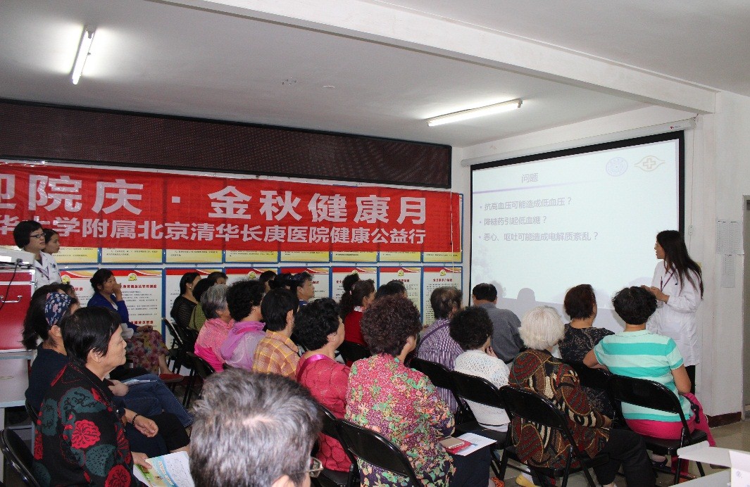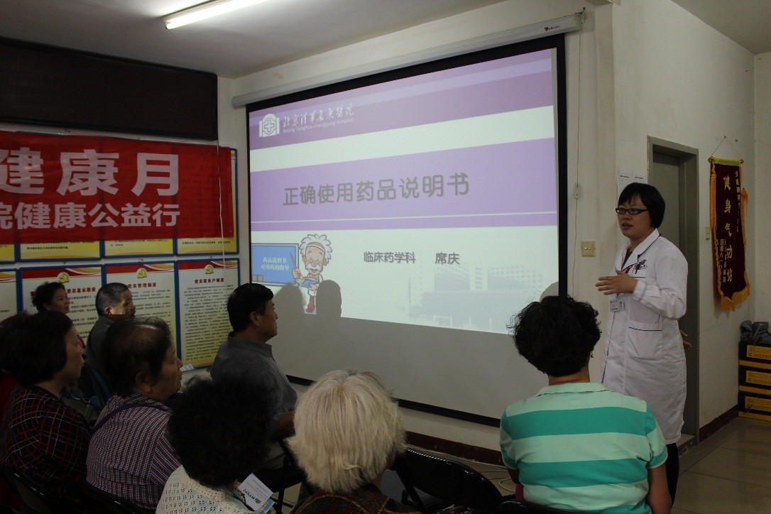 清华长庚医院9月26日电(临床药学科 闫旭)时逢“迎院庆▪金秋健康月”,北京清华长庚医院临床药学团队于2016年9月21日走进天通苑西四区居委会,开展了科普用药讲座及咨询活动,为热情的天通苑大爷、大妈们科普了基本用药知识,解疑常见用药问题,并为各位参与者发放了由临床药学团队制作的用药小册。本次健康行之社区药学服务活动对天通苑居民产生了积极的影响,增强了安全用药意识,得到了居民对清华长庚医院药师的一致好评与认可。