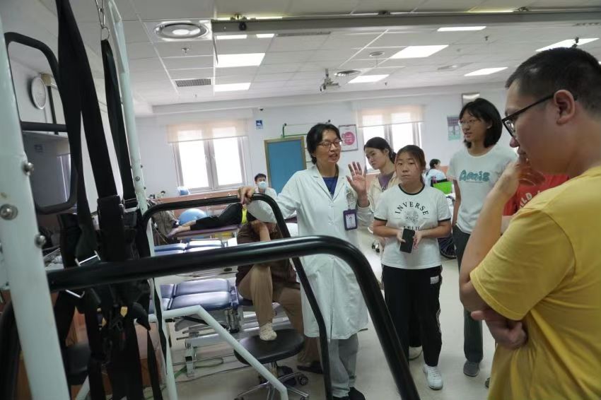 在参观医院的康复科过程中,医护人员向支队成员讲述了康复科的发展历程。由基础的人力护理,到现在全方位的康复性治疗,这样的飞跃离不开多样化、智能化设备的更新和精细化机体检测技术的发展。清华长庚医院安排学生们体验了部分康复器械,生动地三维技术、运动捕捉技术等在智慧医疗中的应用给学生们留下深刻印象。支队成员表示,这不只是一次新奇的医疗体验,更让我们认识到,在21世纪的今天,数字建设已经真切地福润民生。