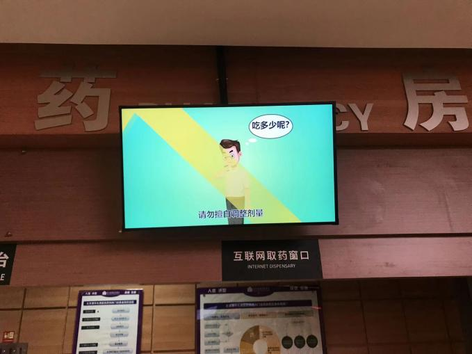 同时,为向患者提供更多的普及用药知识的途径,门诊药房发药柜台为患者设置卫教宣传专用荧幕,循环播放特殊剂型药品用药指导、门诊取药流程、互联网诊疗药品邮寄流程等科普视频,供患者在候药期间观看。