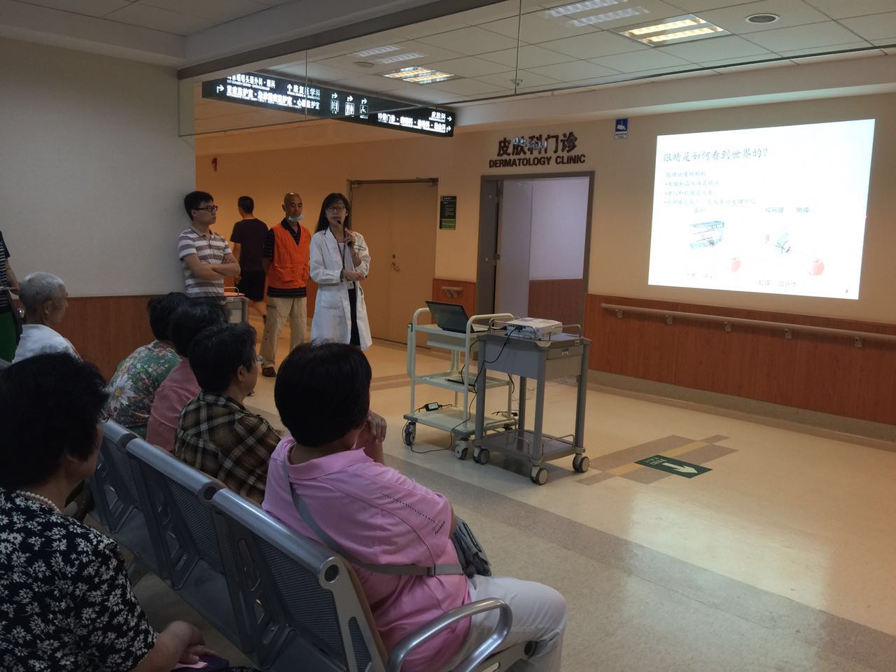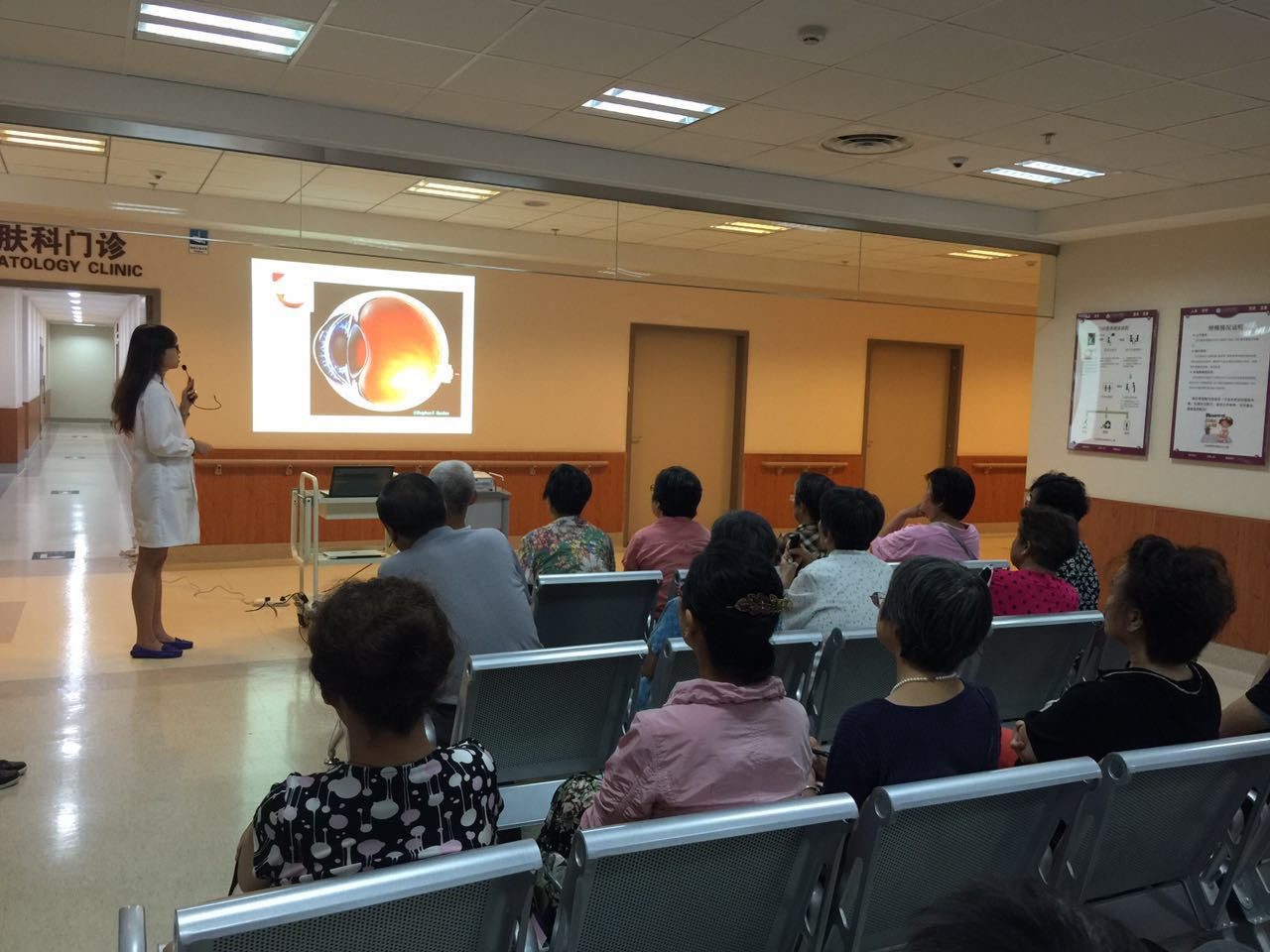 9点,科普讲座正式开始,眼科司山成医师为大家讲解了影响老年人眼睛健康最常见两种疾病----白内障和青光眼的基础知识,提醒大家关注老年患者眼健康问题;